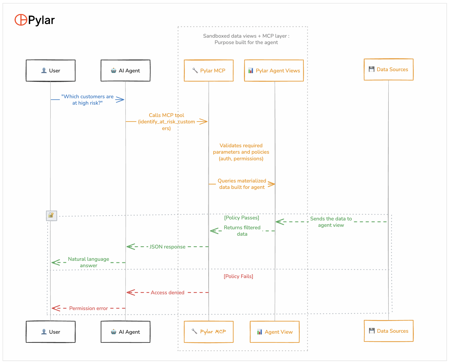 This architecture pattern is implemented in Pylar, but the concepts apply to any system connecting AI agents to structured data. The key is the layered approach with views as the security boundary.
